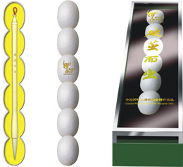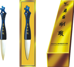 This writing brush, named and wrapped in a cocoon-shaped pack is to commemorate one Huzhou businessman,Mr. Xu-Rongcun, the first Chinese who attended Expo. In 1851, he posted 12 packs of Huzhou silk to London Expo and was honored the first GoldChampion for China. Huzhou is the home of Chinese silk and writing brush, Out of the Cocoon perfectly reveals an ingeniouscombination of the city reputation and future expectation.