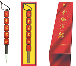 At present, Master Qiu ranks as the unique inheritor of this cultural project of the National Intangible Cultural Heritage Programauthorized by China's Ministry of Culture. In this splendid Expo Festival, Master Qiu and his disciple Zhou Jin present this red lantern-shaped writing brush China Impression, blessing our country for prosperity, unity, harmony and joy. Furthermore, it embodies the continuous civilization and the development of Chinese culture.
